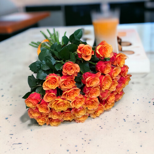Подарите радость в особенный день! Наши флористы создадут неповторимую композицию из роз сорта «Испания», которая станет идеальным подарком для любого рыжего человека.