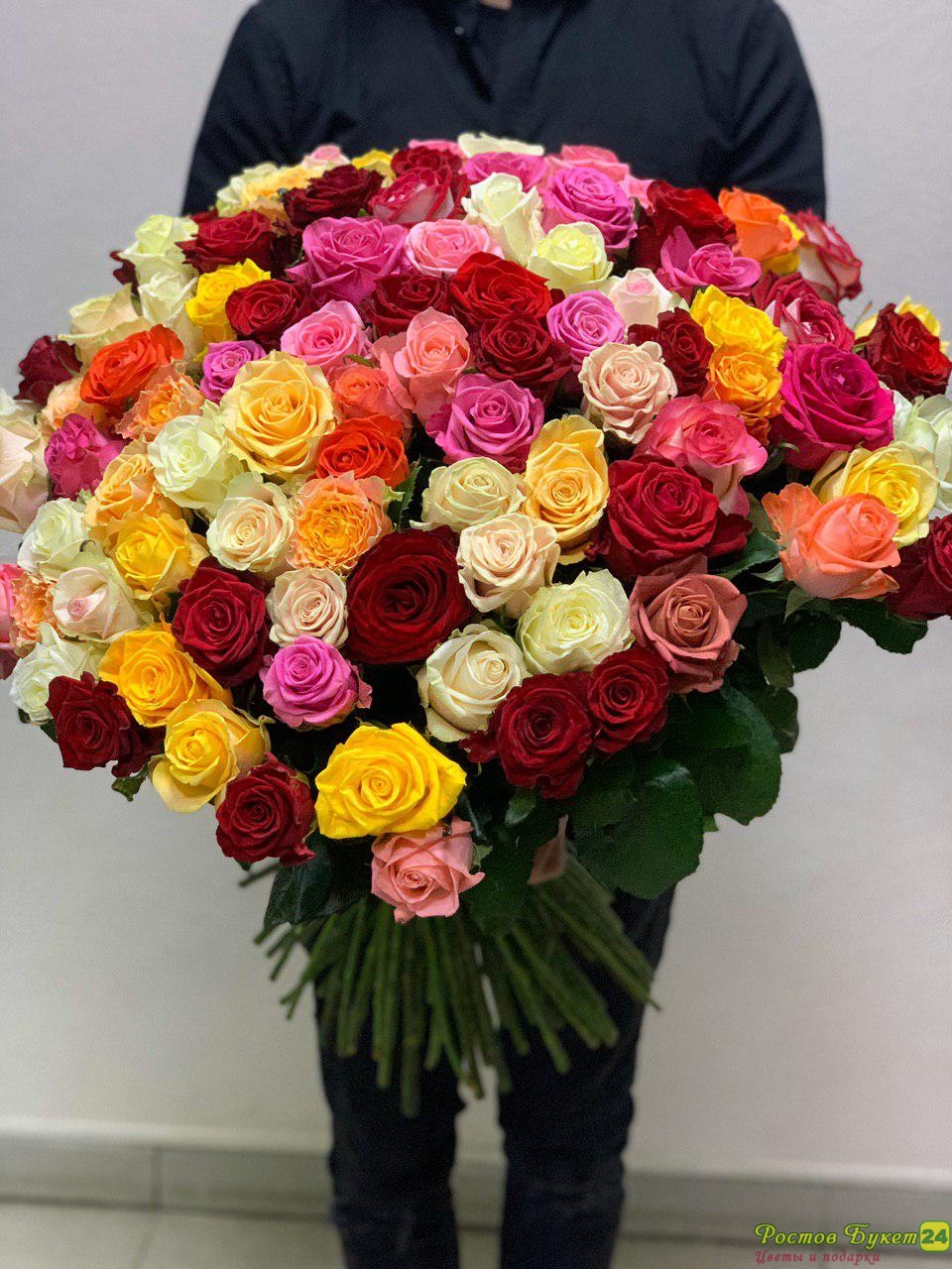 Состав букета: Роза микс (Premium) 101 шт., лента