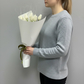 Тюльпан белый -9 шт., ковыль, современная упаковка белого цвета, атласная лента
