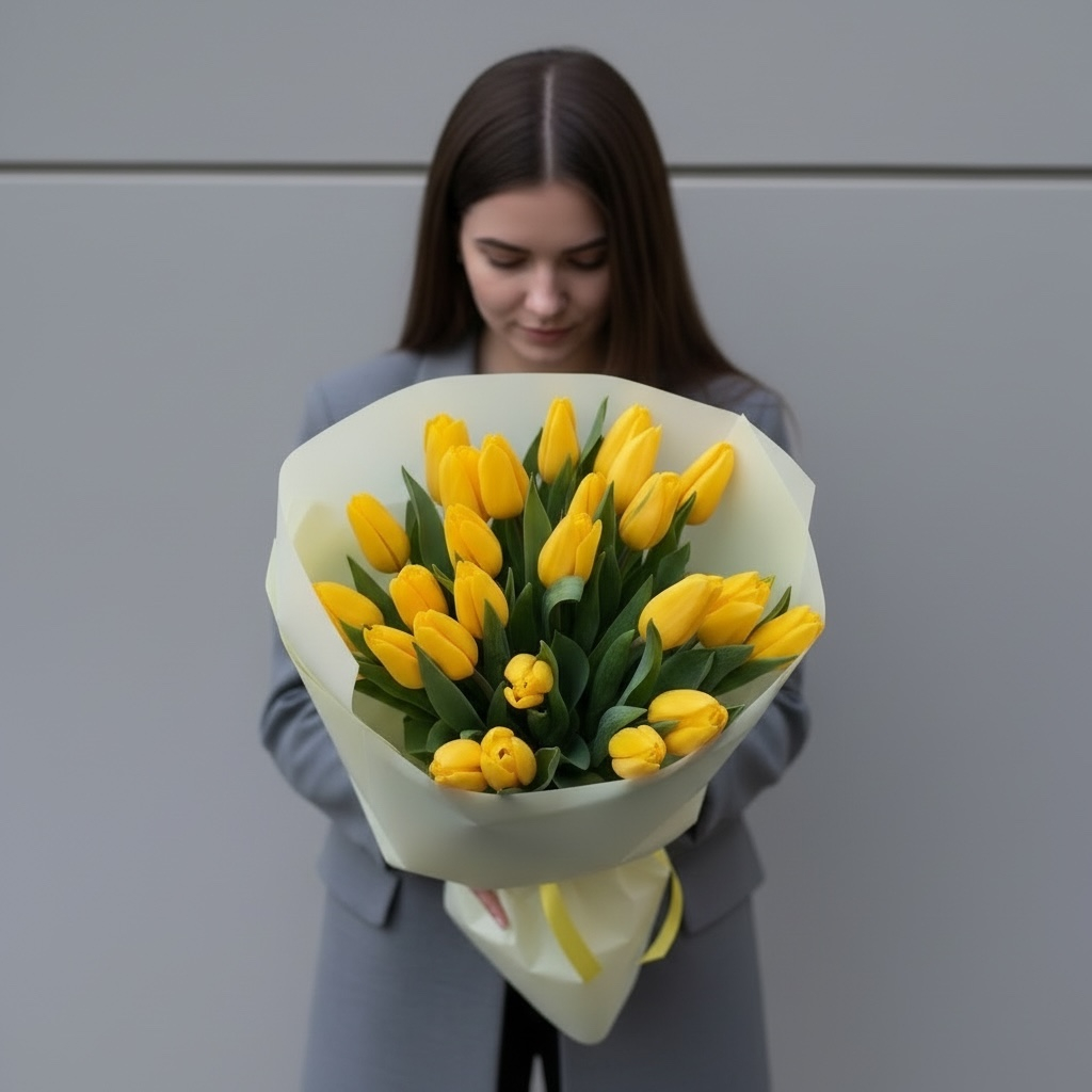 Букет «Жёлтые тюльпаны» — это воплощение радости и свежего весеннего настроения. Сочные золотисто‑жёлтые бутоны излучают тепло и оптимизм, становясь ярким символом внимания и заботы. Каждый цветок тщательно отобран: упругие стебли, плотные бутоны, лёгкий аромат пробуждающейся весны. Изящная упаковка подчёркивает насыщенность оттенка, а бережная доставка гарантирует, что букет сохранит свежесть и торжественный вид до момента вручения. Идеальный выбор для поздравления любимой, мамы или подруги.