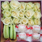Роза белая 60см 15 шт., Макаронс 2 шт., Раффаэлло 8 шт.