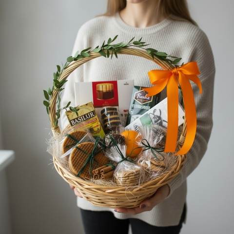 Подарочная корзина «Большое чаепитие» — продуманный гастрономический сюрприз, который подарит уют и радость. В композиции собраны изысканные сорта чая, нежные сладости и деликатные закуски, гармонично дополняющие друг друга. Всё аккуратно уложено в стильную корзину, оформленную в тёплых тонах, — она сразу создаёт атмосферу домашнего чаепития. Такой подарок уместен в любой ситуации: для поздравления коллеги, выражения благодарности или просто чтобы сделать день близкого человека чуть приятнее. Удобная упаковка позволяет легко транспортировать корзину и сразу подавать её к столу — никаких дополнительных приготовлений не требуется.