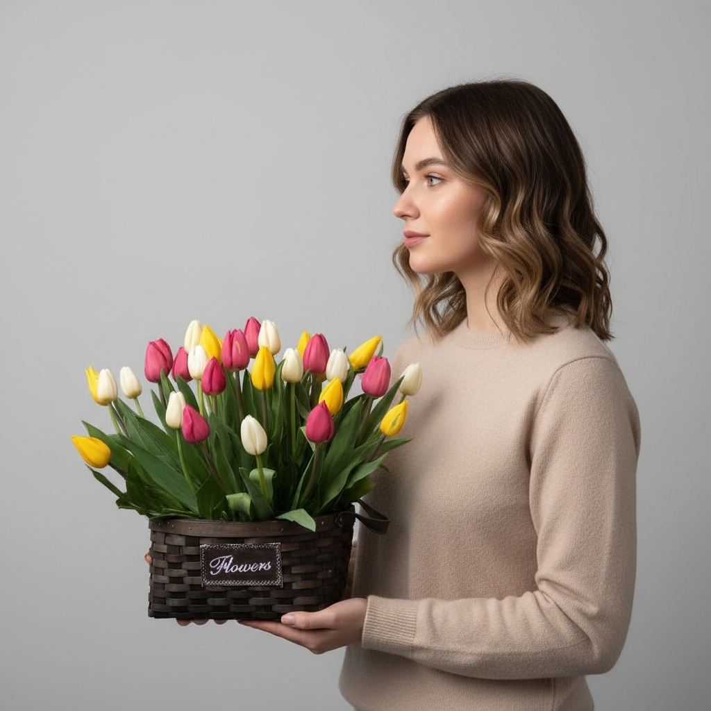 Букет из 35 разноцветных тюльпанов в корзинке — яркий весенний сюрприз, созданный для праздника 8 Марта. Сочная палитра оттенков (от нежно‑розового до насыщенного фиолетового) формирует жизнерадостную композицию, которая мгновенно поднимает настроение. Цветы аккуратно уложены в изящную корзинку: она не только подчёркивает красоту бутонов, но и избавляет от необходимости искать вазу. Каждый тюльпан проходит строгий отбор — упругие стебли и плотно сомкнутые бутоны гарантируют свежесть и долгий срок стояния. Такой букет станет запоминающимся подарком для любимой, мамы или коллеги: он передаёт тепло, заботу и восхищение, превращая обычный день в маленький праздник.