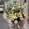 Состав: букет из 7 шт. белоснежных лилий, 3 шт. гипсофилы, 7 шт. кремовых роз, 9 шт. эустома