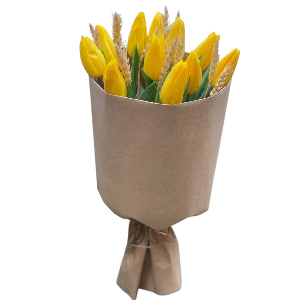 Состав: Тюльпан желтый - 11 шт., Колоски, Крафт
