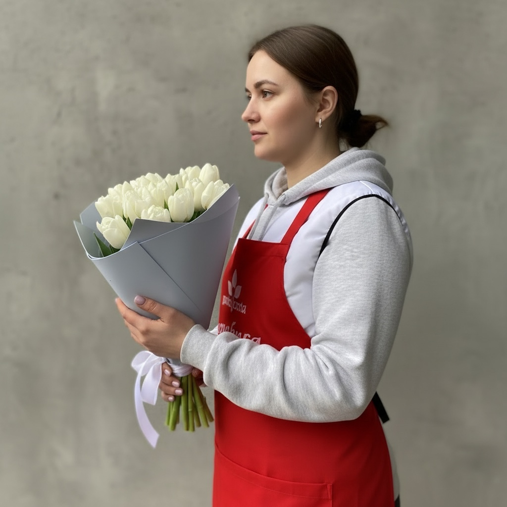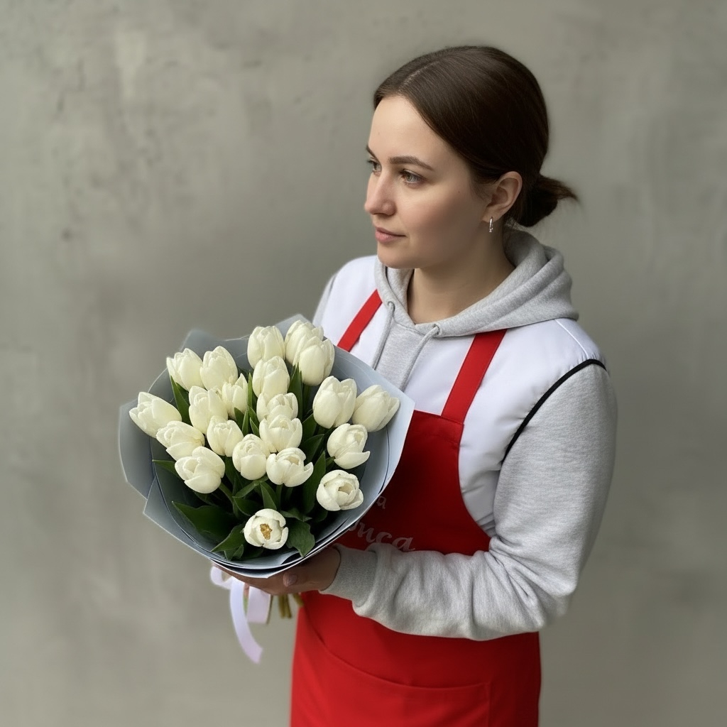 Изысканные белые пионовидные тюльпаны — воплощение утончённой красоты и благородной простоты. Их пышные бутоны, напоминающие нежные пионы, создают объёмную композицию с бархатистой текстурой и безупречной белизной. Каждый цветок тщательно отобран: упругие лепестки и крепкие стебли гарантируют долгую свежесть букета. Такой ансамбль станет элегантным подарком на свадьбу, юбилей или день рождения, подчеркнув значимость момента. Белые пионовидные тюльпаны символизируют чистоту намерений и искренность чувств — подарите близким эстетическое наслаждение в каждой детали.