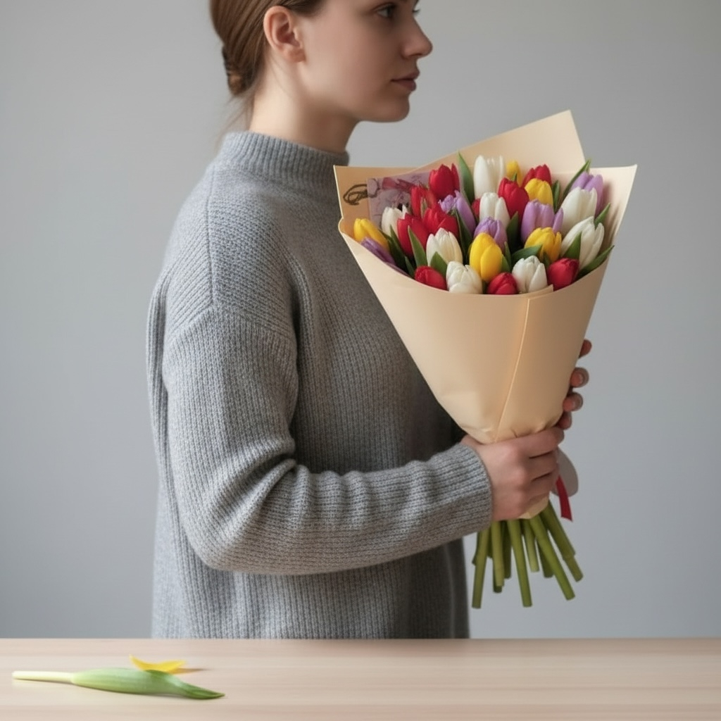 Яркий букет из разноцветных тюльпанов — это праздник красок и весенней энергии в одной композиции. Сочные оттенки — от нежно‑розового до насыщенного фиолетового и солнечно‑жёлтого — создают жизнерадостный калейдоскоп цвета. Каждый бутон тщательно подобран: свежие, упругие лепестки сохраняют форму и яркость. Динамичное сочетание тонов придаёт букету особое очарование, превращая его в выразительный подарок для поднятия настроения. Такая композиция станет искренним знаком внимания, украшением праздника или стильным акцентом в интерьере, даря ощущение пробуждения природы.