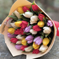 Состав: Тюльпаны микс ярких оттенков 35 шт., фоамиран 2 шт., атласная лента