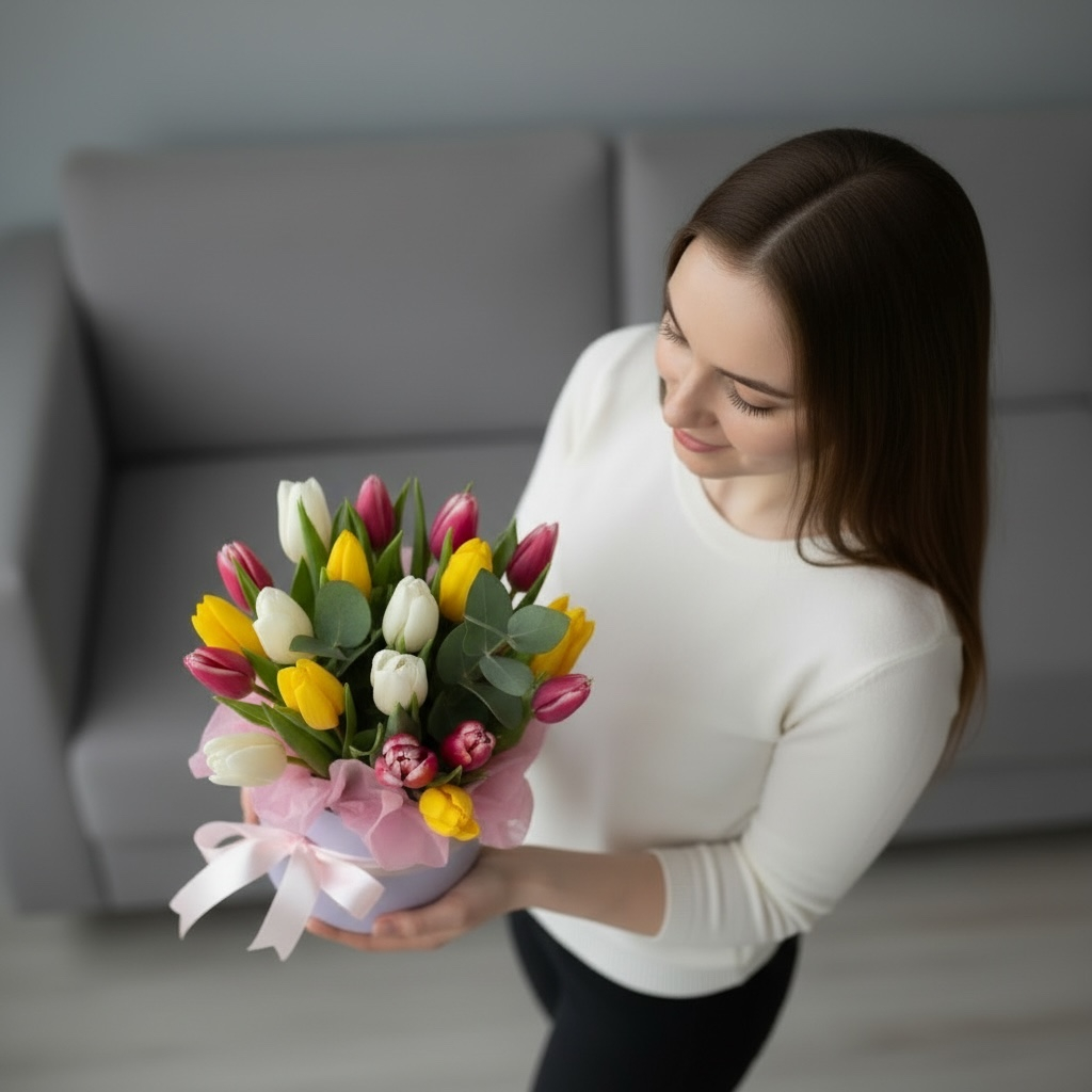 Композиция «С 8 Марта» — это продуманное цветочное поздравление, где каждый элемент подчёркивает заботу и внимание. Нежные тюльпаны в пастельных или насыщенных оттенках собраны в гармоничную композицию с декоративной зеленью и стильным оформлением. Мы отбираем только свежие цветы с упругими стеблями и плотно сомкнутыми бутонами, а аккуратная упаковка придаёт подарку завершённый вид. Бережная доставка сохранит свежесть букета, чтобы ваши тёплые пожелания дошли до адресата в первозданной красоте.