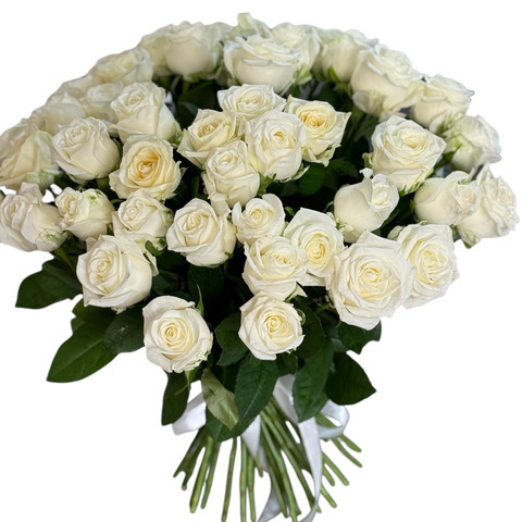 Букет состоит из 101 белой розы, каждая из которых подобрана вручную для достижения идеальной гармонии цвета и формы. Эти розы, собранные вместе, создают завораживающее зрелище, которое невозможно оставить равнодушным. Белый цвет символизирует бесконечную любовь и гармонию, делая этот букет идеальным подарком для вашей любимой или близкого человека.