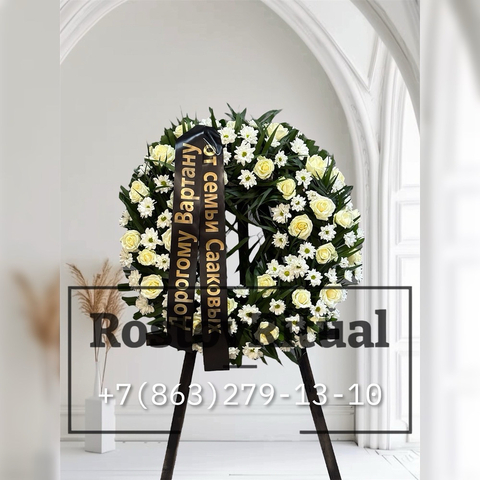 ✨ Позвольте нам создать достойный символ памяти о близком человеке. Траурный венок «Белая память» — это выражение глубокой скорби и уважения в цветах.