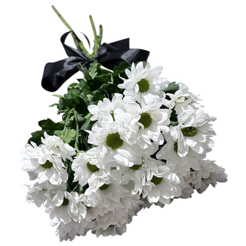 Состав: Хризантема Балтика белая - 4 шт., траурная лента
