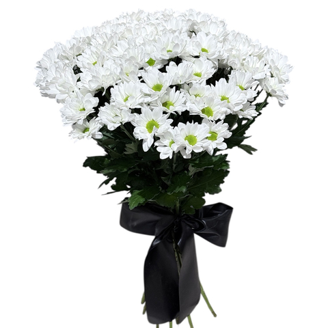 Состав: Хризантема белая - 10 шт., лента траурная черная