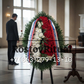 Состав: • кустовые хризантемы — 20; • красные гвоздики — 55; • зелень «Типпи» — 100; • флористический оазис — 8; • каркас с треногой — 1.