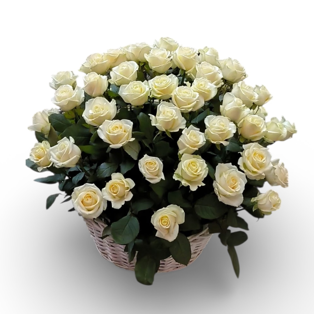 Нежные и утонченные розы в изящной корзинке, без сомнения, растопят сердце даже самой холодной красавицы. Окутайте ее изысканным ароматом великолепных цветов, и она не сможет не откликнуться на такое страстное признание. Роскошный букет из светлых роз станет идеальным средством для выражения самых искренних чувств и создаст незабываемо праздничную атмосферу вокруг вас и вашей избранницы.