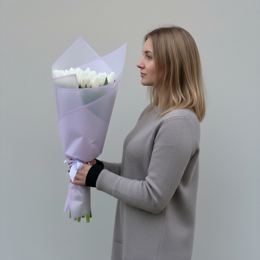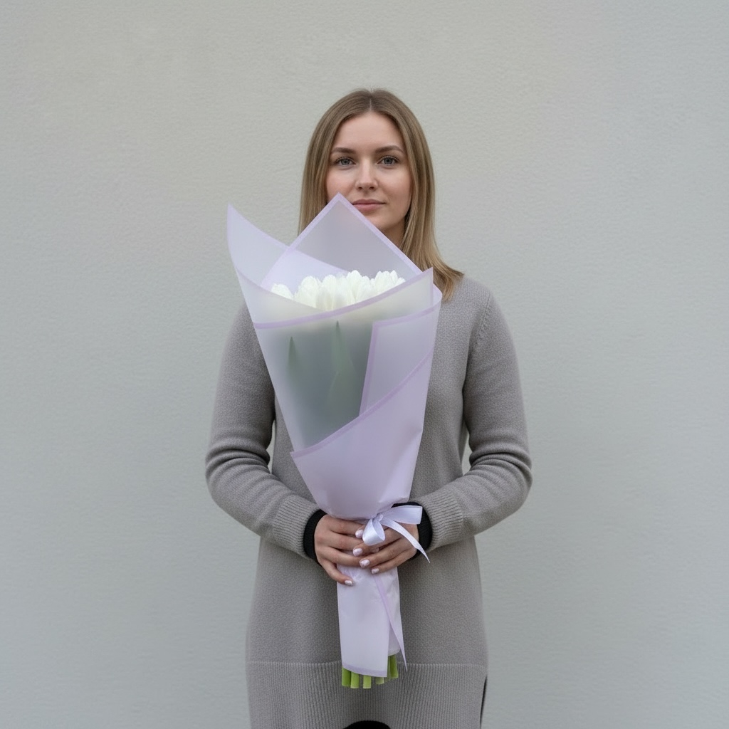 Букет из белых тюльпанов — это воплощение элегантности и чистоты, идеальный способ выразить искренние чувства в праздничный день. Снежно‑белые бутоны с изящно изогнутыми лепестками создают ощущение свежести и лёгкости. Каждый цветок тщательно отобран: ровные стебли, плотные бутоны, тонкий весенний аромат. Лаконичная, но изысканная упаковка подчёркивает благородство композиции, а бережная доставка гарантирует сохранность букета до момента вручения. Такой подарок запомнится своей утончённой простотой.