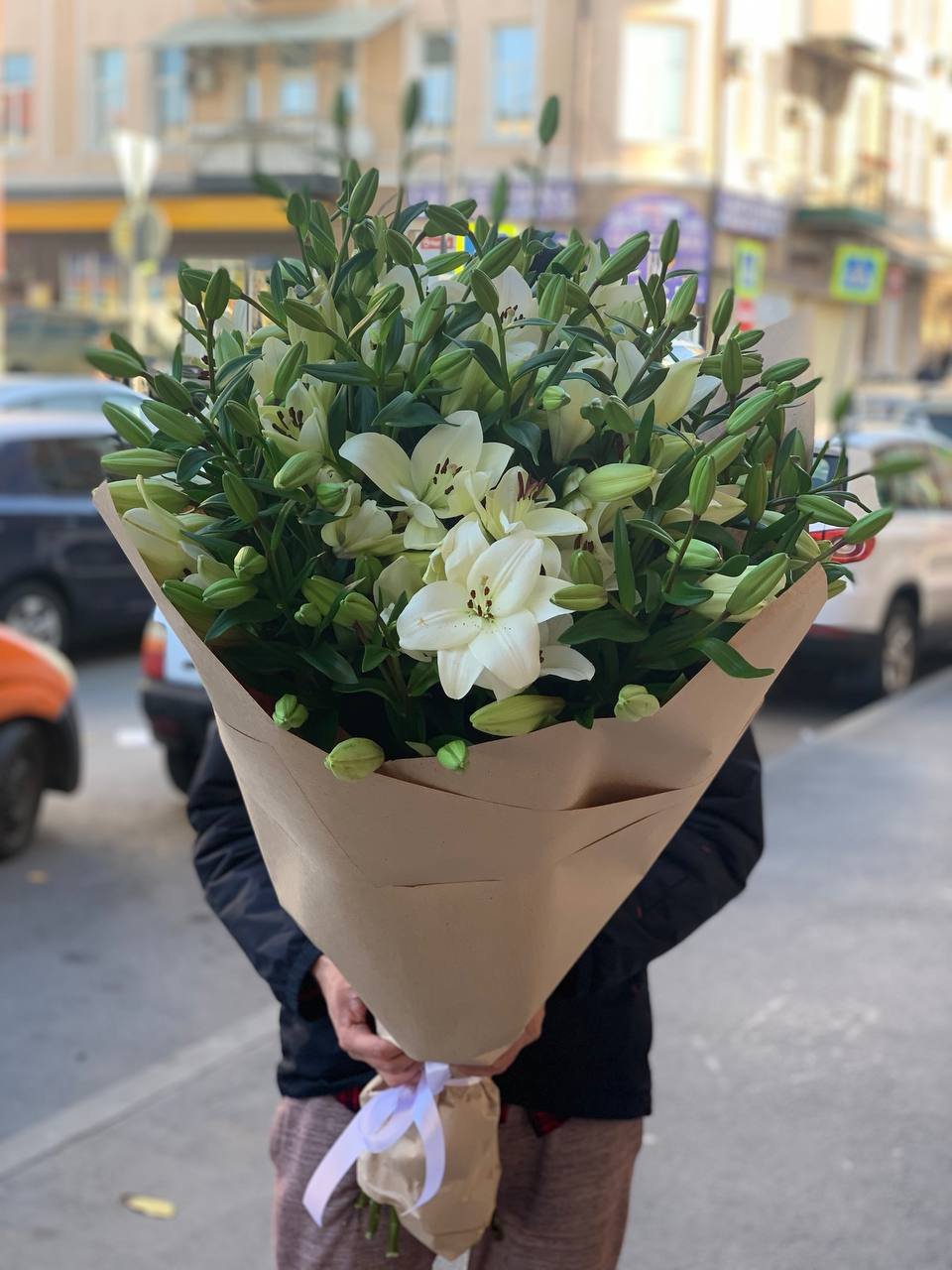Букет из 31 белой лилии — это торжество изящества и символ глубокого уважения. Величественные цветы с благородным ароматом создают композицию, достойную самых значимых событий в жизни.